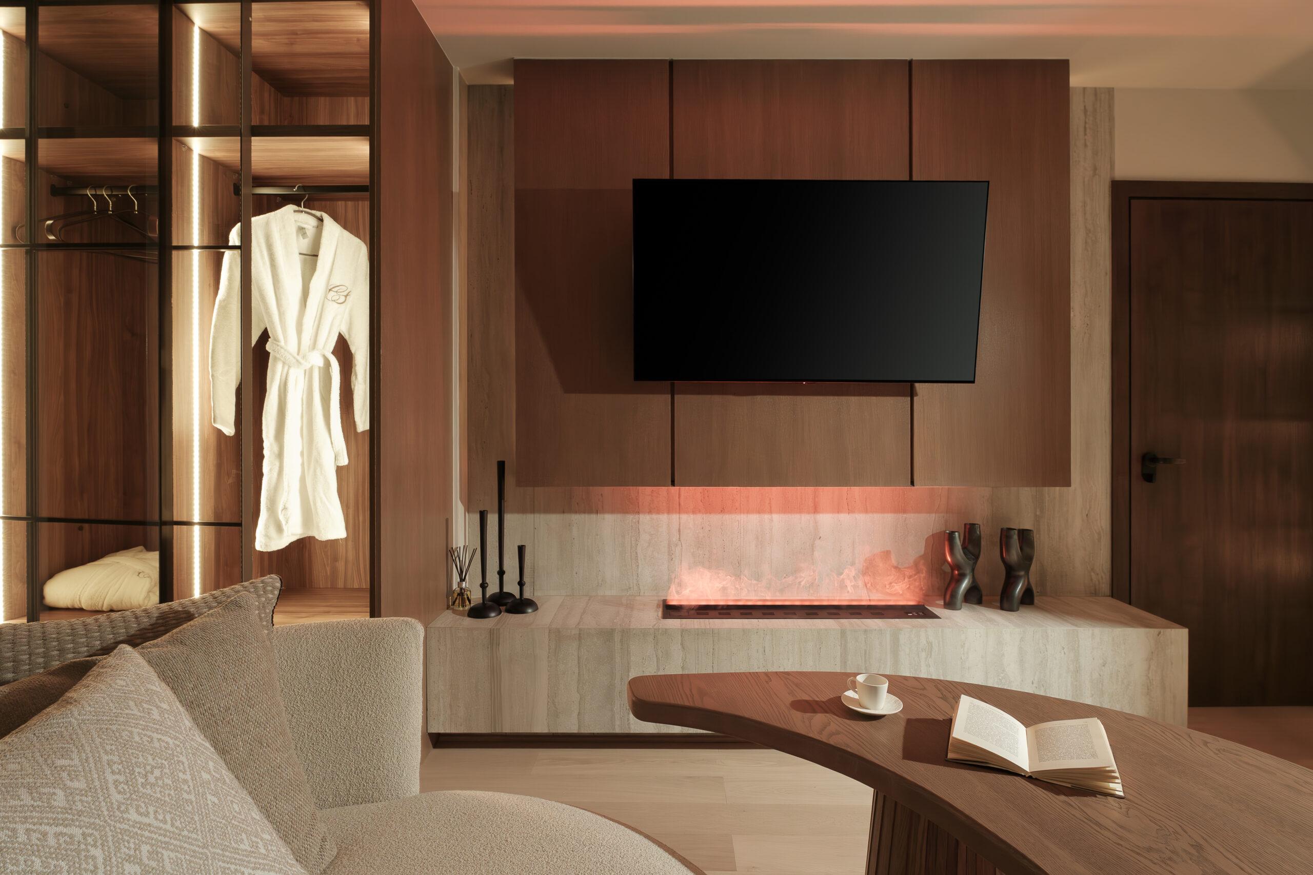 The suite also includes a kitchen, a large wardrobe, an espresso machine for aromatic coffee, a steam iron, and a heat pump system to ensure comfort throughout the year. With smart room functionality, the stay is both convenient and enjoyable, delivering a sense of absolute luxury in every detail.